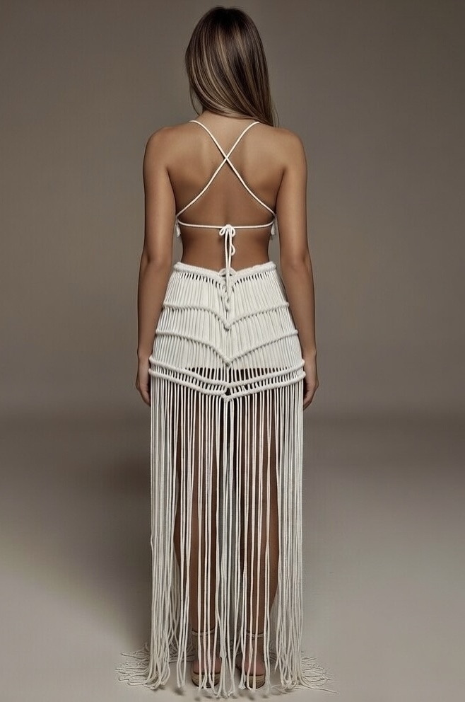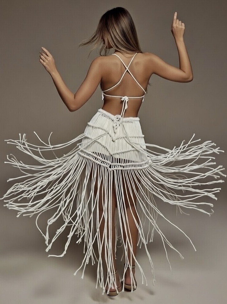 paralel makrome halatları, boyu daha uzun ve silüeti daha ince gösteren heykelsi