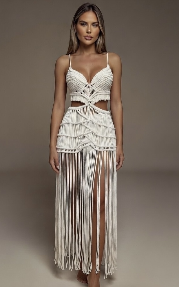 paralel makrome halatları, boyu daha uzun ve silüeti daha ince gösteren heykelsi
